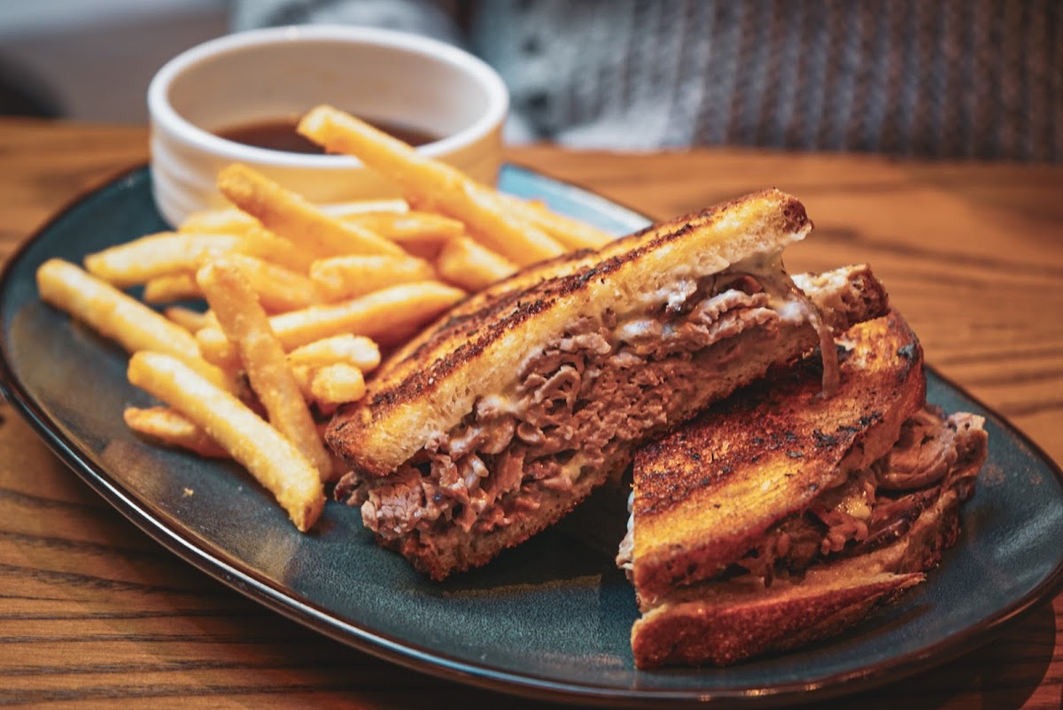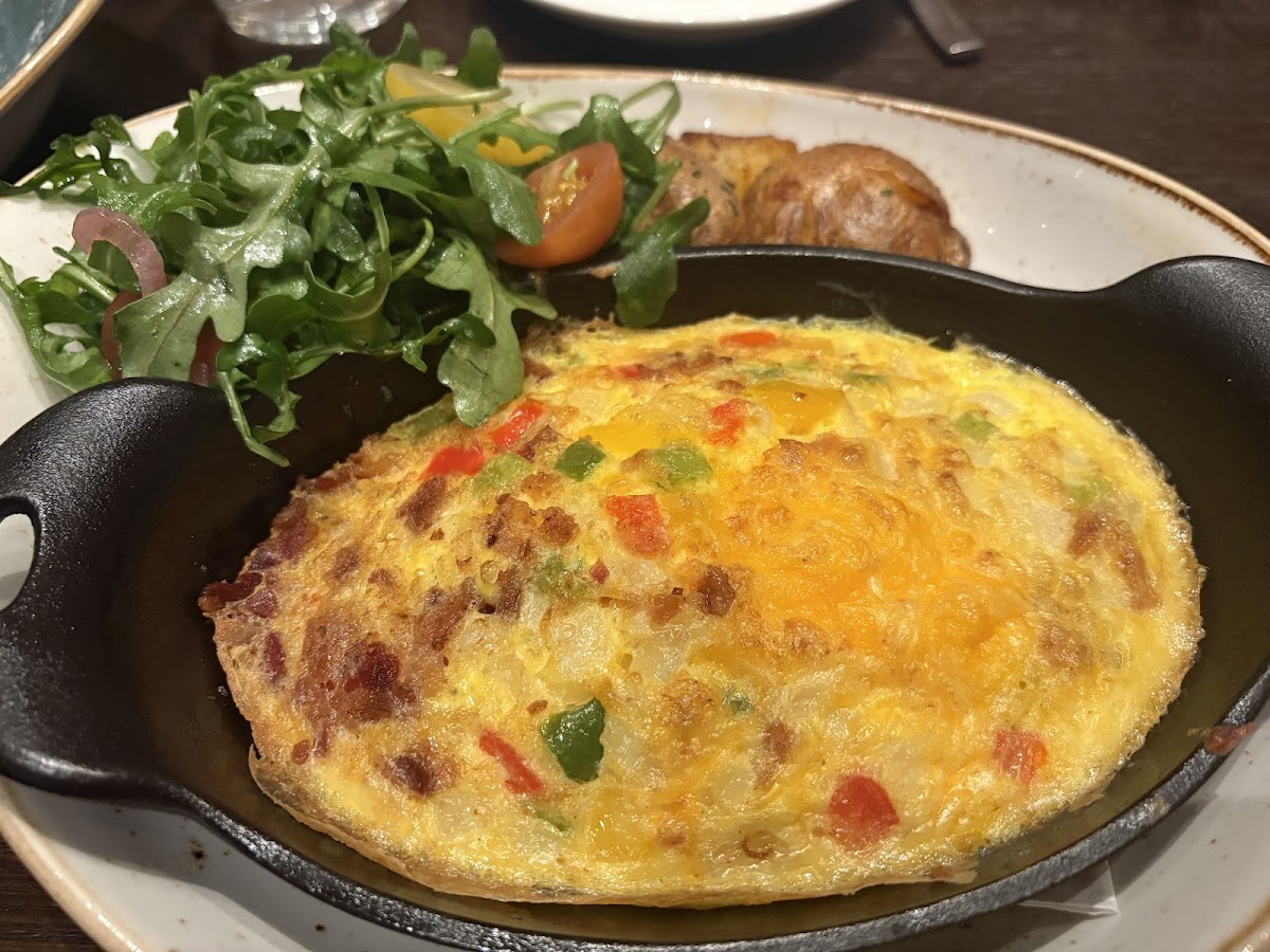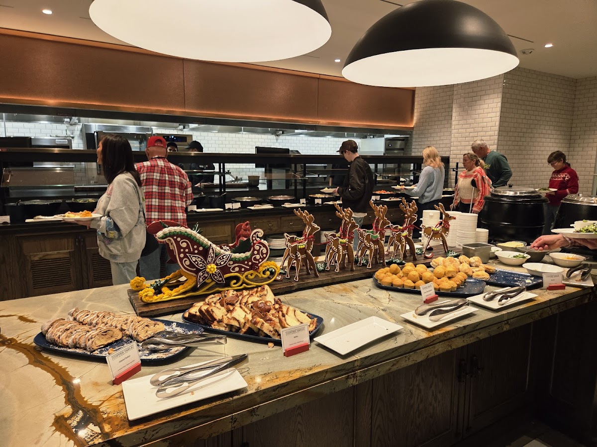 Ate at The Copper Table twice - once for dinner and once for brunch. They have kind of odd hours like closing at noon on weekdays which can be inconvenient. I got the Bison ribeye sandwich with Bison au jus. The meat was very tender and had a unique more gamey taste but in a good way. The cheese was a bit much but was still a great sandwich. The chips felt homemade but a bit salty. The au jus actually was pretty hearty and gave a nice balance to the saltiness from the rest of the meal. I also went for brunch on Saturday. Just an FYI, they have a separate brunch menu and a $30 brunch buffet which I decided to try. There were a lot of options including french toast, sausage, chia pudding, eggs Benedict, breakfast potatoes, lox, and had a Belgian waffle and omelet station. I thought the value was there with all the options and they were all pretty good quality. The honeycomb station was a nice touch too. I enjoyed everything I ate though only downside was there were quite a few fruit flies on some of the fruit at the waffle station. It's a bit pricey but the variety of options makes it worth it. I think this restaurant and others at the Gaylord do a weird thing where they ask customers to write reviews with their names in it so they can earn extra commission. Well, Lenworth provided great service at dinner and Mahlet friendly service at brunch. So, hope that helps.
