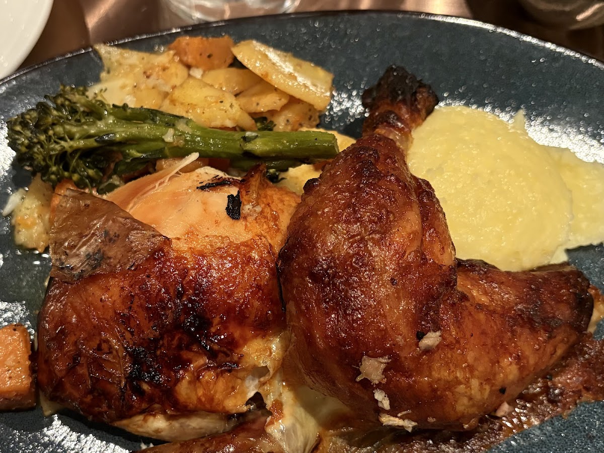 The chicken and biscuits were very good, although it seemed more like chicken pot pie. The grain salad was phenomenal. I added salmon which was a little overcooked. My daughter-in-law got truffle fries with some hot chicken. The amount of food was over the top. Our service was good, but the prices were too high.