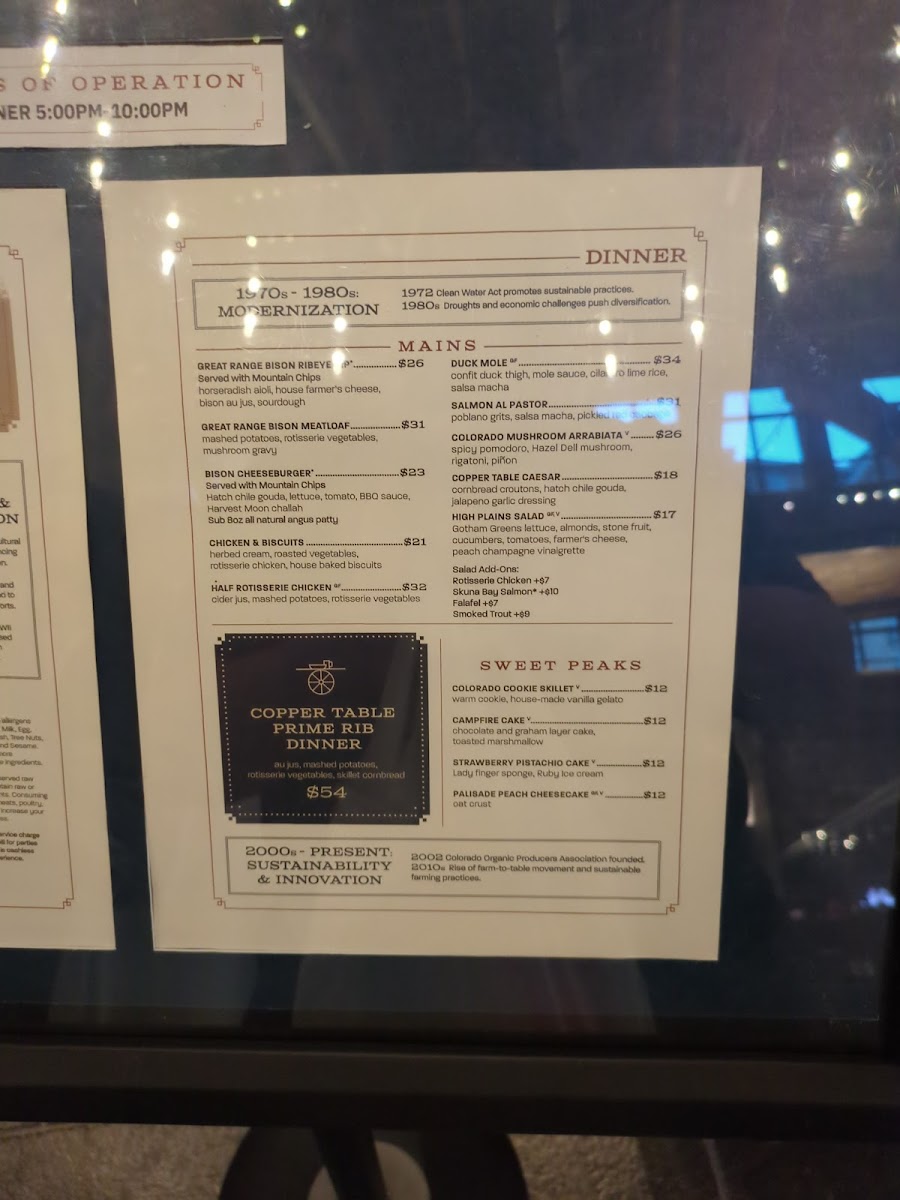 Copper Table Menu